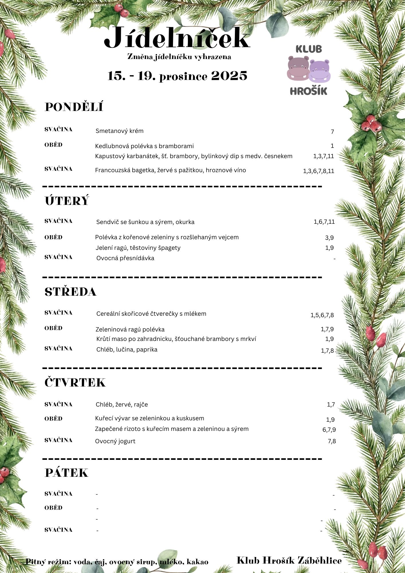 Informace o uzavření školky - Vánoce 2025